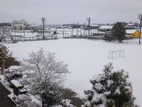 昨晩から降り続いた雪が午後には止み、学校周辺が幻想的な雪景色となりました