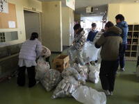 。朝から子供たちはアルミ缶の入った袋を持って登校したり、保護者の方が車で運んでくださったりと、たくさんのアルミ缶を回収することができました