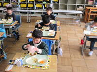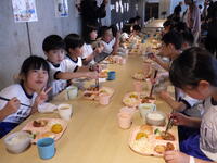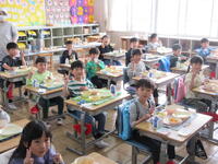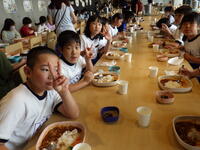 1年生、はじめての給食
