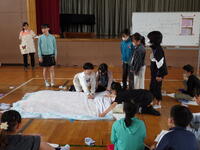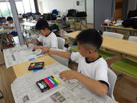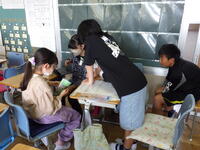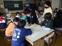 。1年生と6年生、2年生と5年生、3年生と4年生でペアを作り、上学年が下学年の子供たちをサポートしながら取り組ました