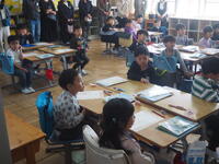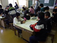 。子供たちは提出物を出したり、ランドセルを片付けたりしてベリーの会の皆さんの到着を教室で待ちます