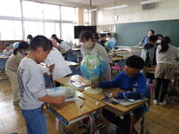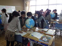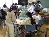 5年生では、社会の学習で地球を使って世界の国々について調べていました