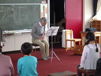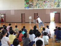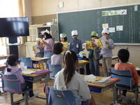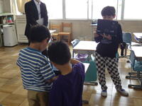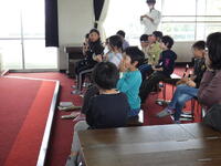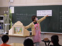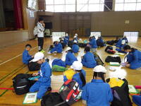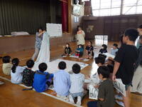 。3年生は読み聞かせボランティアの方の紙芝居に合わせて歌を歌いながら、楽しく参加していました