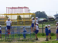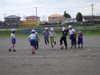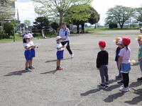 !(担任の先生も一緒に外に出て子供たちと遊んでいます