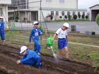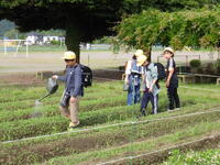 。今日も子供たちは、登校すると農園の植物に水やりをしていました。