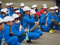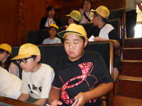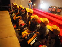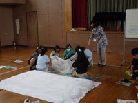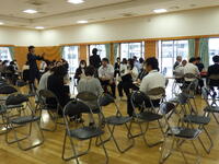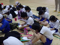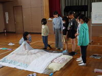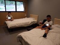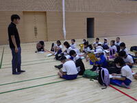 いよいよ入所式。施設の方から施設の使い方について説明がありました。説明をメモする子供たちが多いことに驚きました。布団の敷き方を代表の子供たちが実践!学校での練習の成果もあり、素早く用意をすることができ、施設の方が感心していました。
