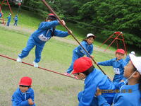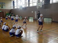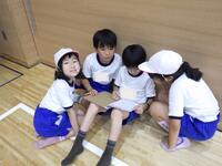 。励ましの声をかけたり、やり方を教えたりする上学年の子供たちの姿に優しさと思いやりを感じました