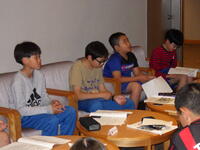 お風呂の後には班長会議を行いました。今日よくできたこと、明日がんばりたいことを班長で話し合い、班の全員に伝えました。しっかり話し合った結果を伝える班長さんの姿がとても頼もしく感じました!