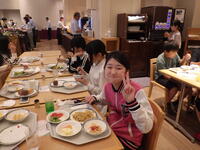 いよいよ夕食です。広くて明るい食堂でみんなで楽しく会食しました。今日はおやつがありません!翌朝までお腹が減らないようにしっかり食べましょう!
