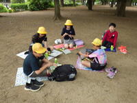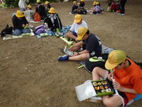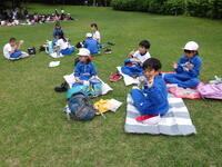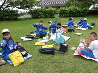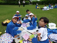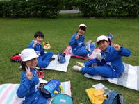 ハイキングの後は、広場で昼食をとりました。班ごとにレジャーシートを広げてお弁当を食べました。みんなと外で食べるお弁当はおいしかったです。
