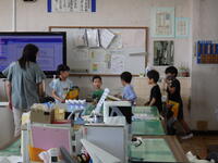 登校した6年生が1年生教室でランドセルの片付けや学習の準備など、小学校生活を始めたばかりの1年生のサポートをしています