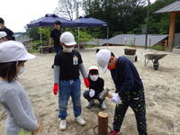 。火を使って杉の板を焼くので、やけどに注意しながら安全に活動することができました