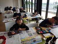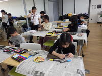 次の活動は大石でできたコースターの絵付け体験。思い思いにコースターに絵を描き、素敵な作品ができました。