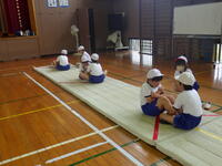 雨が降っていたため、体育館に集合しました