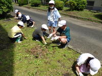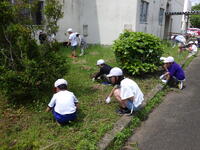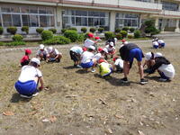 。今日も1・6年生、2・5年生、3・4年生に分かれ、それぞれ校庭や中庭の花壇の除草を行いました