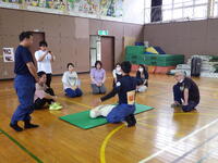 。「学校の教育活動で緊急の事故や疾病等に対し、落ち着いて迅速に対応するための知識や技能を身に付ける」ことを目的として、栃木市消防署都賀分署の職員の方を講師に招き、心臓マッサージやAEDの使い方について学びました