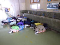 お知らせ昨日(9月18日)に第2回の避難訓練を実施しました学校。今回は竜巻が発生し学校へやってきた場合、どのように避難すれば自分の命を守ることができるかについての訓練でした虫眼鏡。子供たちは竜巻の発生、避難開始の緊急放送を聞き、防災頭巾をかぶり、窓ガラスから離れた安全な場所に落ち着いて避難しました。避難場所では頭を抱えて「ダンゴ虫」の姿勢で竜巻が去るのを静かに待ちましたグループ。5分間という長く感じる時間でしたが、じっと頭を抱えて待つ態度に「自分の命は自分で守る」という気持ちの強さを感じましたにっこり