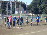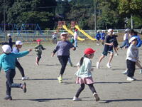 。澄んだ秋空の下、子供たちはスマイル班に分かれ、おにごっこやケイドロ、だるまさんが〇〇したなど楽しく活動しました