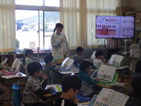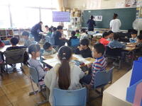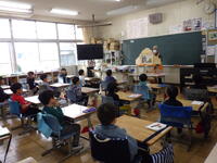 。他の教室でも、大型モニターに本を映しての読み聞かせがあり、子供たちはモニターを見ながら、よく話を聞いていました