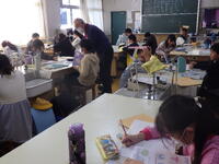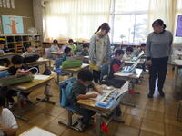 今日は幼稚園、保育園の先生が1年生の教室に入り、授業参観と子供たちの支援をしてくださいました