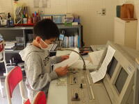 。子供たちは思い思いに学習の準備をして、漢字練習や計算練習に取り組んでいました