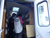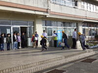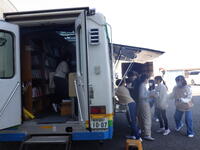 。体育館にたくさん本を並べ、移動図書館も体育館の入口に準備
