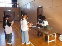 今朝は中学生が来校して、昇降口前であいさつ運動がありました