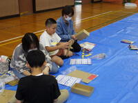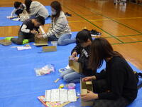 。箱を使って、お気に入りの宝箱(入れ物)を作ります。色紙を貼り付けたり、猫や怪獣の形にしたり、引き出しを作ったりと、親子で仲よく相談しながら作る姿に普段の親子の関わりによさを感じました