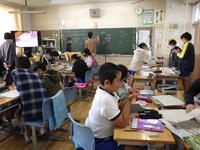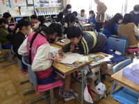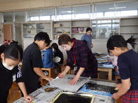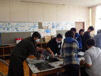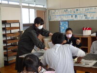 お知らせ今日は5年生で版画ボランティアの方にお越しいただき、版画を刷る作業の支援をしていただきましたキラキラ。版画板に黒いインクをローラーでつけて、白い紙を丁寧に置き、バレンでこすります美術・図工。そしてボランティアの方と一緒に刷り具合を確認します虫眼鏡。子供たちは刷り上がった作品を見て、とても嬉しそうにしていました花丸。たくさんのボランティアの方に見ていただくことで、子供たちも安心して活動することができ、作業も効率よく進みます笑う