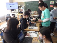 お知らせ6年生の社会科の授業を参観しましたグループ。個別学習で調べた江戸時代の文化や産業について、グループで伝え合いながら、その特徴について考えました鉛筆。伝え合いながら気付いたことを付せんに書いて貼りつけました虫眼鏡。子供たちは自分の調べたことを相手に分かるように説明したり、疑問に感じたことを質問したりする様子が見られ、学び合いのよさを感じました笑う