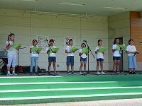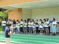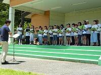 合唱部の児童が手本を示し、一緒に大きな声で歌うことができました。