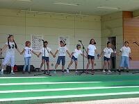 感謝の気持ちを込めて、学年ごとに音楽やダンスを発表しました。また、ボランティアの方と一緒に校歌も歌いました。