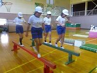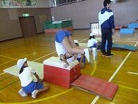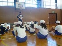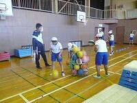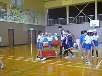 大会に向けてルールの確認をしました。 体育委員会の児童が、手本を見せました。