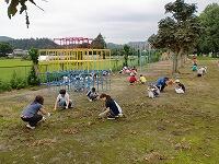 校庭の除草や落ち葉などを拾い、とてもきれいになりました。