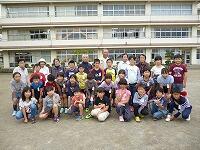本校では、毎年秋に、地域のお年寄りの方々と輪投げやグランドゴルフを楽しんだり給食を食べたりして、交流を深めています。