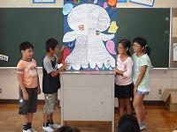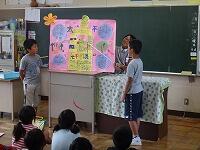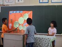 10月1日に4年生が3年生に向けて、宿泊学習で学んだことを発表しました。