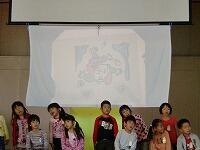 初めに、楽器の影絵クイズをまじえた歌と合奏でした。