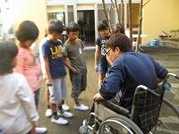 「てつだい隊」は車いす体験をし、散歩に行きました。「しらべ隊」は、学校との違いを見て回りました。