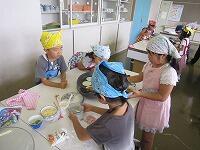 みんなで育てたトマトで作った先生特製ピザソースをぬりぬり!こぼさないように慎重です。