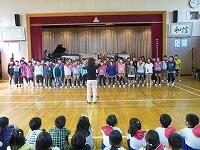 4年生も体操に参加しての交流      お礼に「この星に生まれて」の合唱
