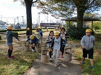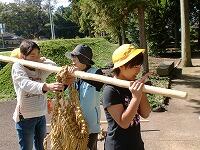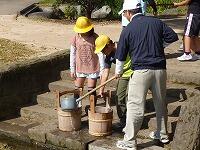 てんびん棒で水運び体験         2回目は上手に運べました。
