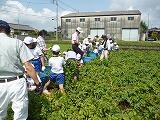 野菜の苗もずいぶん大きくなり、収穫の喜びを感じている2年生。