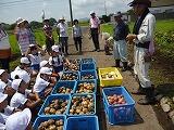 2年生が今日収穫したじゃがいもが給食に出るのは7月3日。