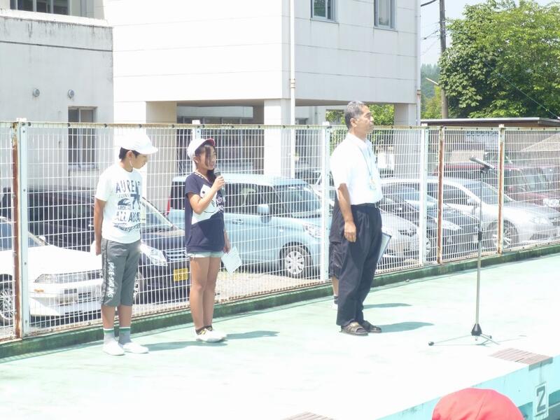 校長先生からお話をいただきました。 学年ごとに「水泳の目標」を発表しました。
