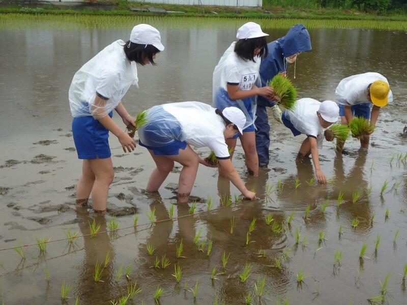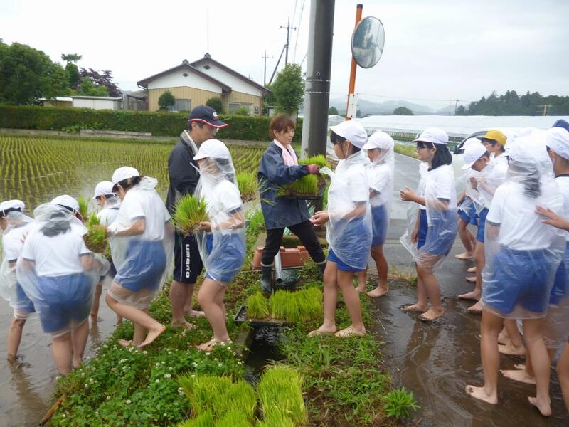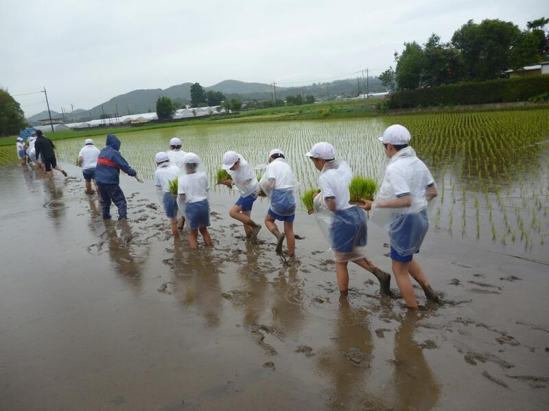 本校では、学校評議員でもある茅島淳二様のご厚意により、毎年田植えを体験させていただいています。今年は小雨の降る天候の中、児童は悪戦苦闘しながらも楽しく取り組みました。