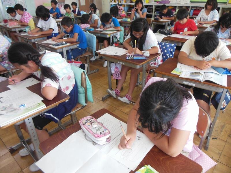 主人公の気持ちを考えて、ワークシートに記入しているところです。