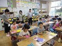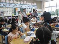 国際交流員による授業       1年生図工「チョッキンパでかざろう」  4年生理科「電気のはたらき」