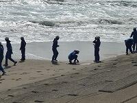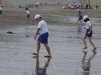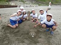 砂浜活動。まずは、水慣れ。冷たさが、心地よかった。