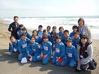ビーチフラッグや潮くみリレー。みんなで競走して楽しみました。