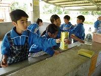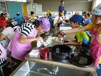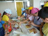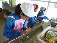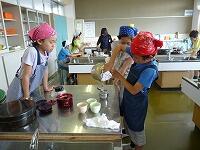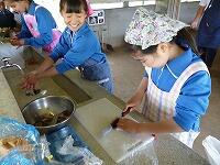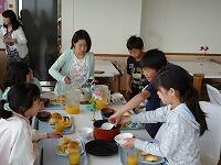 自然の家での食事。1日目の夕食では、戸惑う様子も見られましたが、2日目の朝食からは、バッチリ。食事係を中心に、手の空いている人が必要な準備をどんどん進めていく姿が各班とも見られました。後片付けも、きれい。すばらしいの一言です。